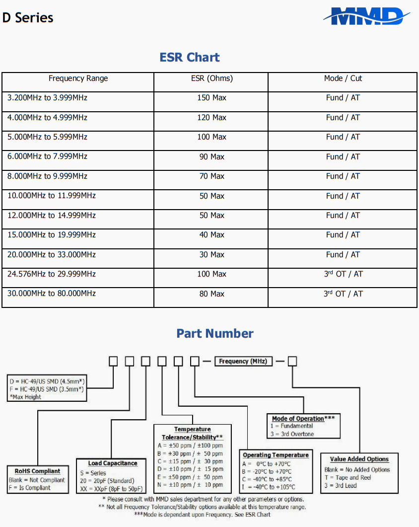 | DF18CC1- 25.000MHZ-T | MMD | D | -40°C ~ 85°C | 25 MHz | ±30ppm | ±15ppm | 18 pF |