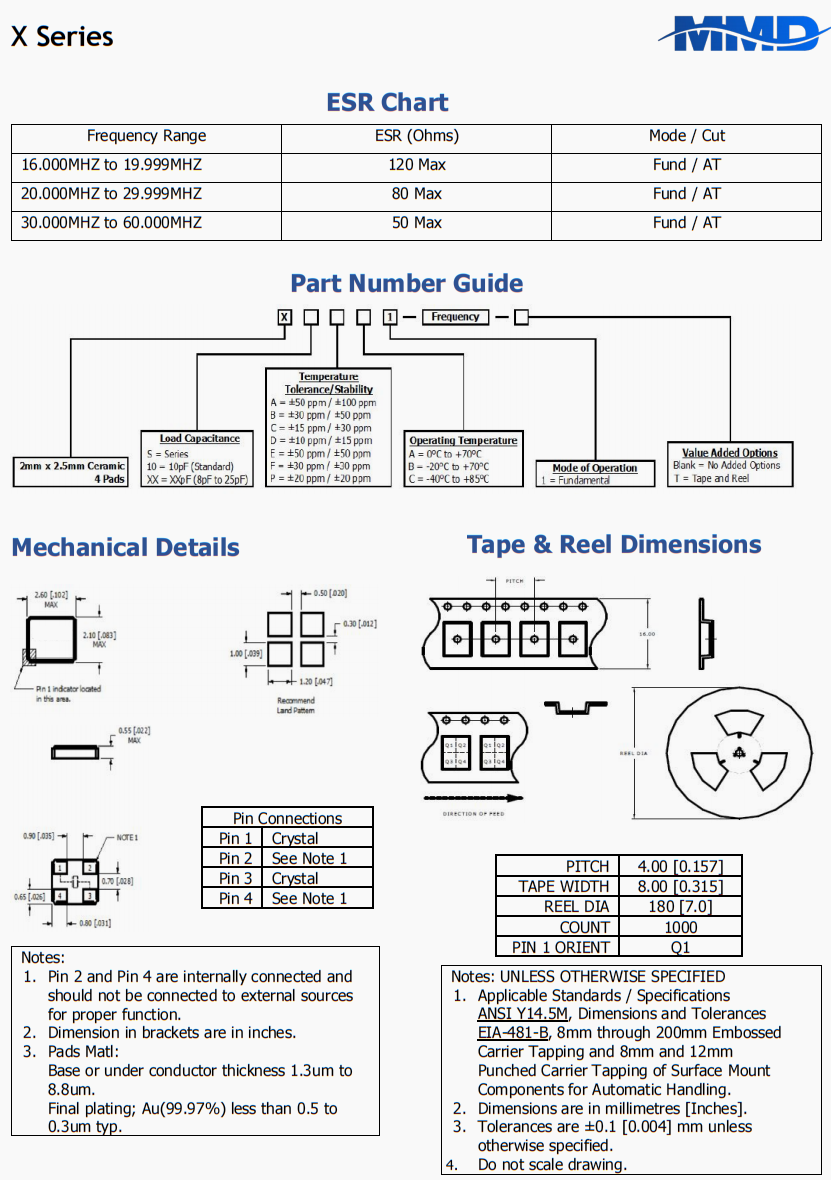麥迪康超小型晶振,2520進(jìn)口晶振,X20AB1-16.000MHZ-T電腦主板晶振,美國MMD晶振公司,X系列晶振,X20AB1-16.000MHZ-T晶振,貼片晶振,石英晶振,歐美晶振,超小型晶振,四腳晶振,超小型晶振,高精度晶振,汽車晶振,2520晶振, 耐高溫晶振,無源晶振,液晶儀表盤晶振,進(jìn)口晶振,歐美晶振,超小型晶振,電腦主板晶振,無源晶振,顯示器晶振,環(huán)保無鉛晶振,MMD晶振。2mm x 2.5mm 4襯墊陶瓷包裝,超微型輪廓,符合RoHS標(biāo)準(zhǔn),磁帶和卷軸包裝。