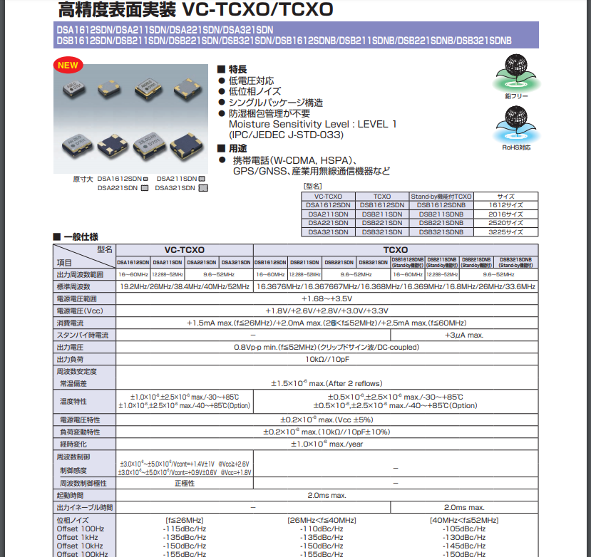 更多>>KDS晶振系列DSB321SDN26M-1XTW26000MAA溫補(bǔ)晶振