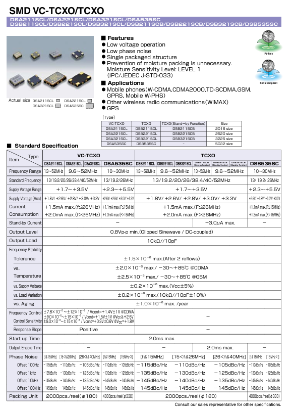 更多>>1XXA19200MEA日本KDS壓控溫補(bǔ)晶振DSA221SCL-SDN19.2M