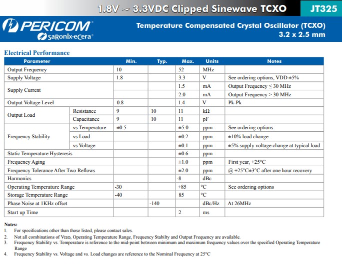 | JT325 | 削波正弦 | 1.8 - 3.3 | 0.5 - 5.0 | -40~85 | - | 4 |