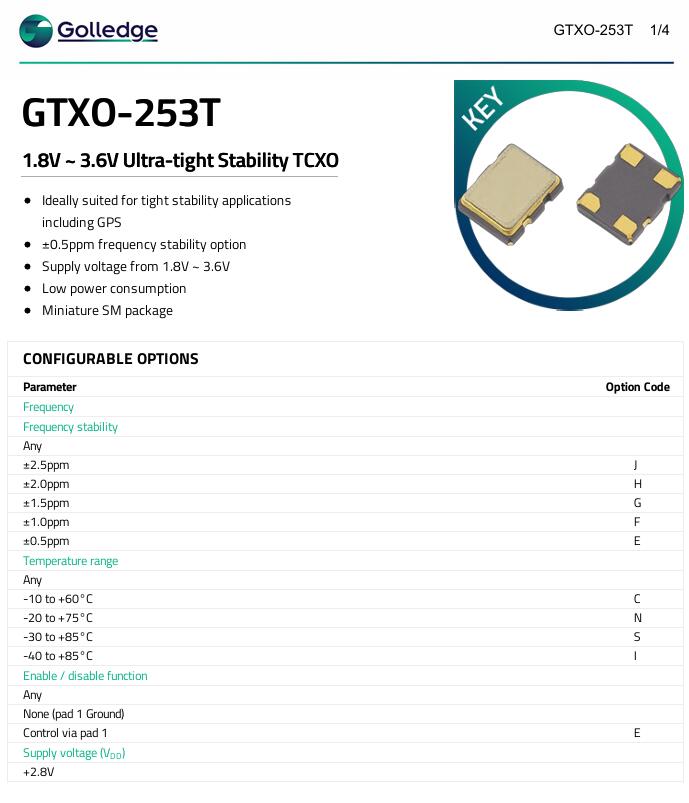 | MP12533 | Golledge | 26.0MHZ GTXO-253T/EI SM TCXO溫補(bǔ)晶振 | GTXO-253T | 1.8V | ±0.5ppm | -40°C ~ 85°C | 4 | 2520 |