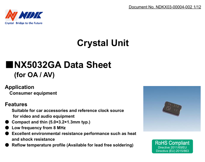 技術(shù)創(chuàng)新是品牌長(zhǎng)青的核心驅(qū)動(dòng)力,NX5032GA晶振的設(shè)計(jì)突破彰顯了持續(xù)研發(fā)的戰(zhàn)略意義.在消費(fèi)電子與汽車(chē)配件小型化的趨勢(shì)下,NDK將晶振體積壓縮至5.0×3.2×1.3mm的輕薄規(guī)格,既滿(mǎn)足了設(shè)備集成需求,又通過(guò)特殊工藝保障了耐熱性與抗沖擊性.更值得稱(chēng)道的是其對(duì)無(wú)鉛焊接技術(shù)的適配,石英晶振順應(yīng)環(huán)保趨勢(shì)的同時(shí),兼容現(xiàn)代制造業(yè)的流水線生產(chǎn).這種"需求導(dǎo)向+技術(shù)攻堅(jiān)"的研發(fā)模式,讓NDK在晶振領(lǐng)域持續(xù)領(lǐng)跑,也印證了"創(chuàng)新是引領(lǐng)發(fā)展的第一動(dòng)力"的深刻內(nèi)涵.