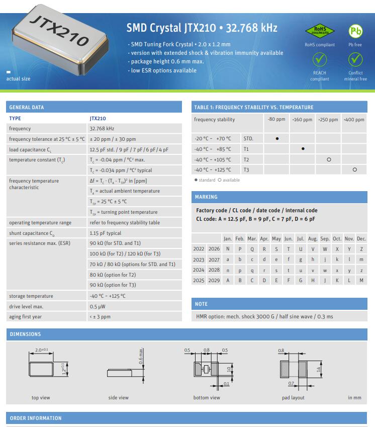 首頁(yè)企業(yè)博客 Jauch車(chē)規(guī)晶振Q 0.032768-JTX210-12.5-20-T3-LF JTX210 2012 32.768K 12.5PF-40°C125°C