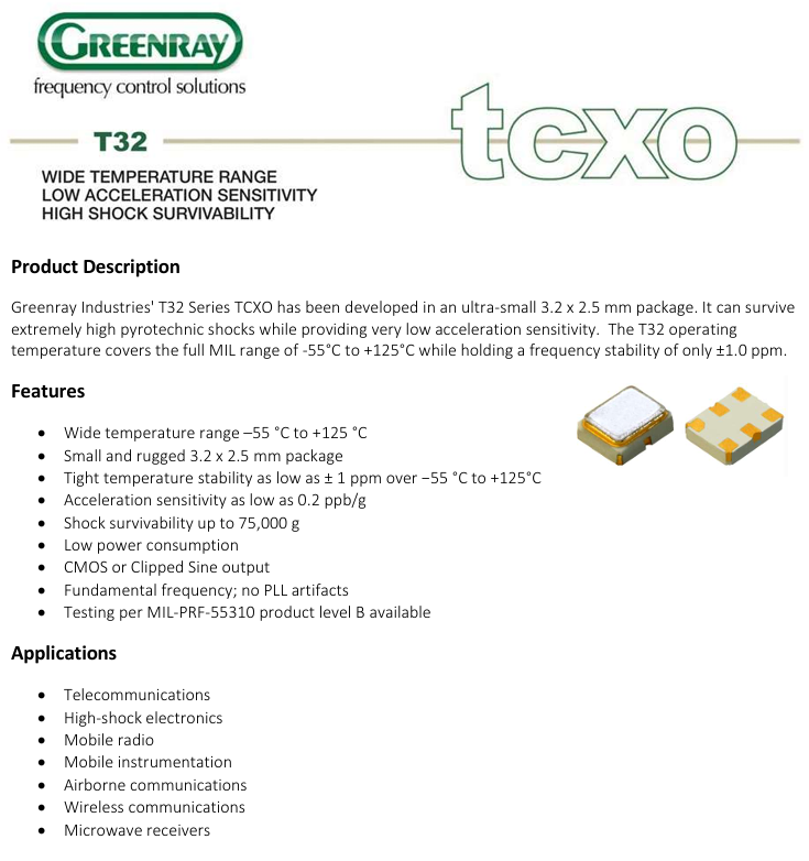 美國Greenray格林雷用于軍事和國防工業(yè)的高性能石英晶體振蕩器