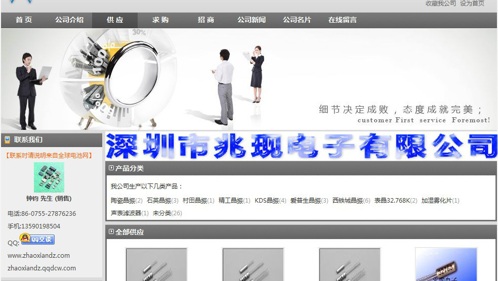 隨著這幾年公司的發(fā)展逐漸走上的軌道,不僅讓更多的客戶認(rèn)識到了深圳市兆現(xiàn)電子有限公司,還讓更多的人使用上了好的產(chǎn)品。公司以晶振做為主打 產(chǎn)品,以產(chǎn)品質(zhì)量、性能做廣告,旗下石英晶振、進(jìn)口晶振、石英晶體振蕩器、溫補(bǔ)晶振、聲表面諧振器、微孔霧化片都在網(wǎng)上排名很靠前。