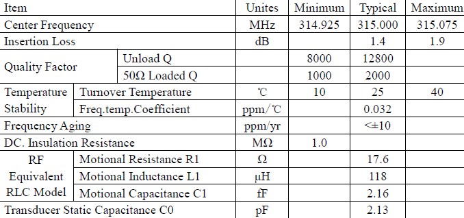 • 頻率:314.925~315.075MHZ