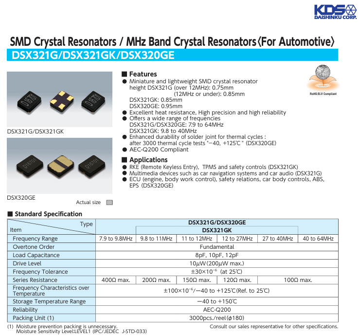 更多>>KDS車規(guī)級(jí)陶瓷晶振7AD02400A38 DSX321G 24M